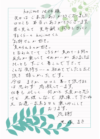 私に会いに来る前に日記から得る情報から少しでも安心してお店に来られるようになっていただきたい。そういう思いで、こう言った書き方をしています。
