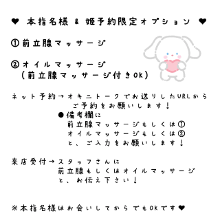 本指名様&姫予約限定オプションの