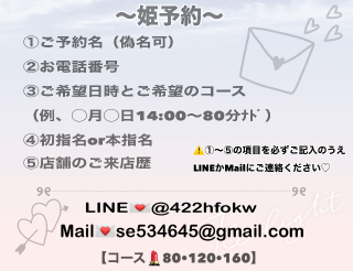 ↓👸姫予約様連絡先👸↓