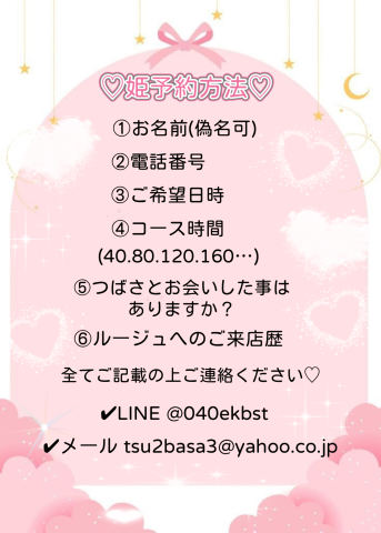 お早めの姫予約💕そして長いお時間でのご予約💓