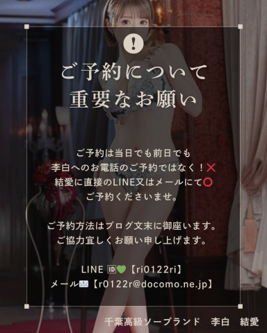 李白へのお電話のご予約ではなく❌、結愛さんへ直接のLINE又はメールでのご予約にご協力、ほんっっっとーーーーに有難う御座いました!!!!!🙏✨✨
