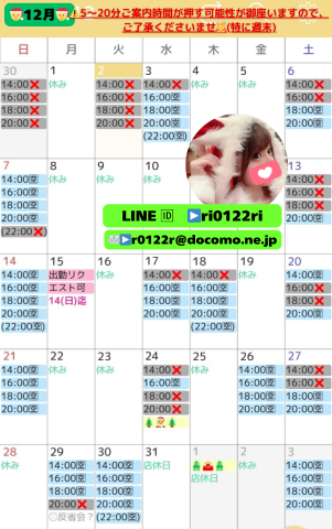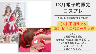 良かったら12月期間限定コスプレ、姫予約LINE(メール)にてリクエストしてやってください💌🩷