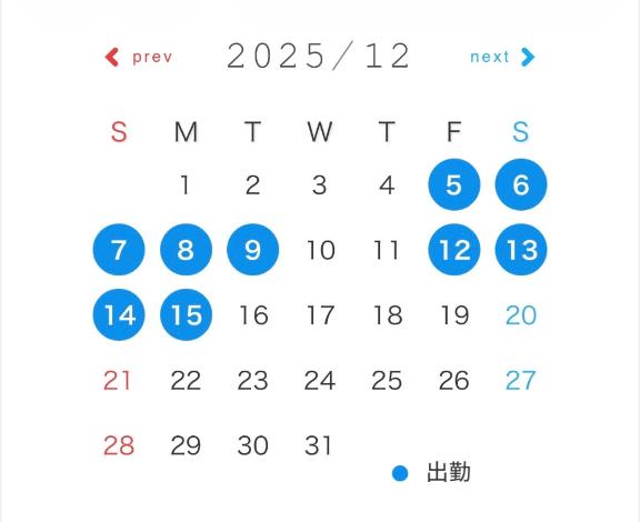 (終わってみて出勤カレンダー見てみたら