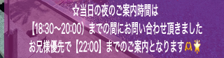 ※当日の夜のご案内時間は