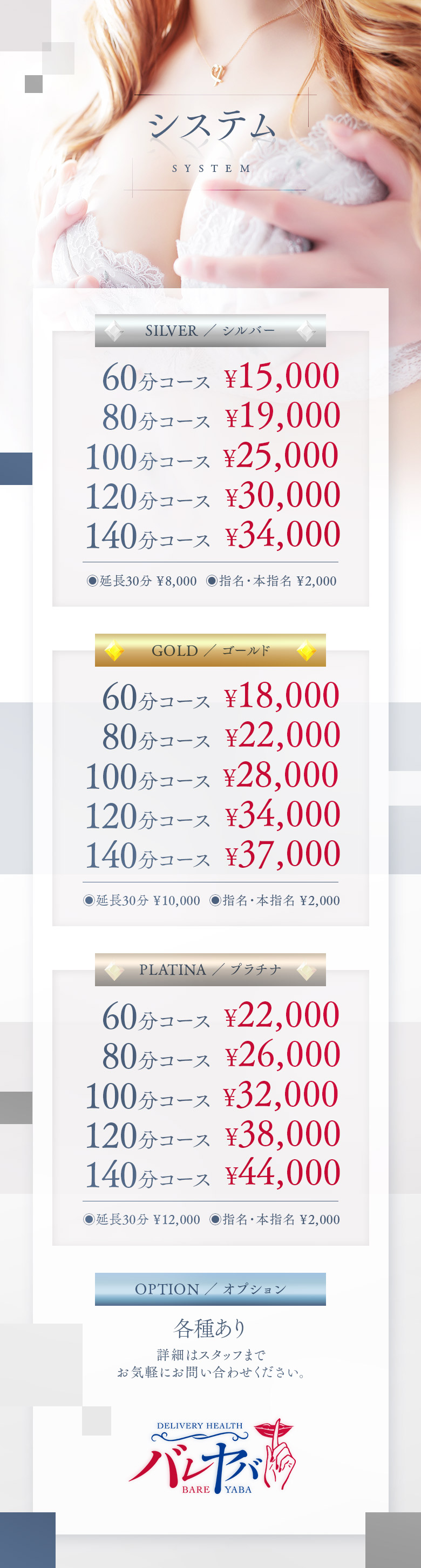 | お客様とキャストが安心してご利用頂くためのルールになります。 下記に該当するお客様のご利用をお断り致します。 • 18歳未満や高校生の方、本番行為。 • 個人的なお誘いの勧誘や隠しカメラ機器による撮影又は録音、盗聴などの行為。 • ドラッグに該当される薬物を服用、もしくはキャストに使用させようとする行為。 • 暴力団、関係者又はそれに準ずる方。 • 同業関係者の方。 • 泥酔又は衛生上などにより当店がご利用頂けないと判断された方。 • 性病、もしくはこれが疑わしいと判断された方。 • 覚醒剤などのドラッグ、その他法律で禁止されている薬物を使用されている方。 • 当店スタッフがふさわしくないと判断した方。 ※女性の退店に繋がる行為又はそれに準じる行為は罰金100万円を請求します ※上記事項に該当する場合、サービスを中断致します。 その際の返金には応じられません。 行為が悪質な場合は所轄の警察に連絡させて頂きます。 |