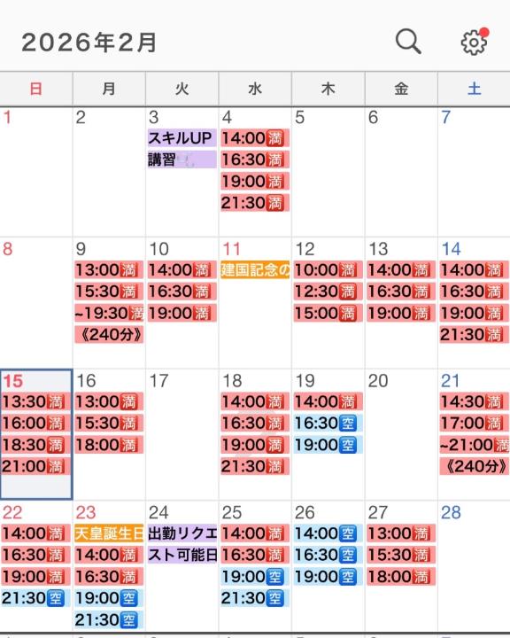 すでに埋まってる日時もあるため