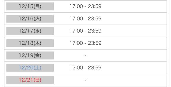 営業/10:00~翌0:00 定休日/年中無休