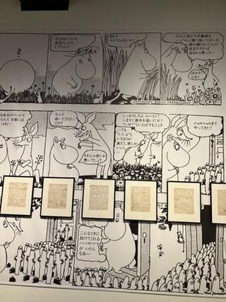 展示には【ムーミンの小説📕】で書かれた一節が、印象的に原画と組み合わされていました。