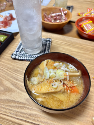 お兄様のご自宅の食卓で手作りの豚汁やお酒、おつまみなどを頂きながら、たくさんお話が出来てとても楽しかったです???