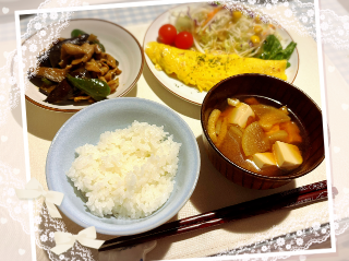 緑はほうれん草だったり小松菜だったりする日も(՞ o̴̶̷̤ ̫ o̴̶̷̤ ՞)