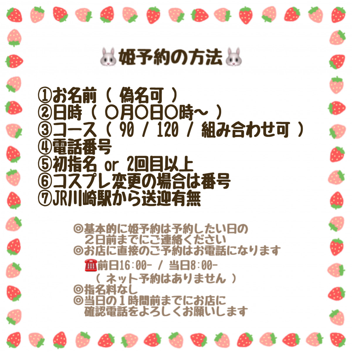 前日・当日はお店までご連絡ください♡