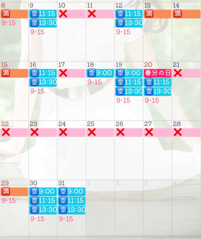 気になる日をタップしていただくと、詳細がポップアップいたします