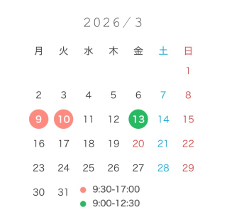 次回は10日㈫ 7時〜18時までいますので