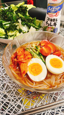 今日の、お夕飯は★チョレギサラダ★冷麺にしました韓国料理🇰🇷大好き人間過ぎます(笑)