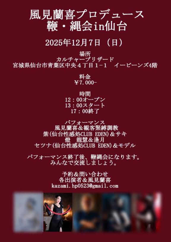 鞭・縄会in仙台 12時会場・13時スタート