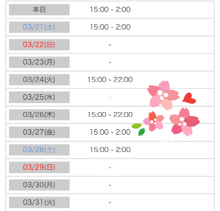 営業/10時~LAST 定休日/