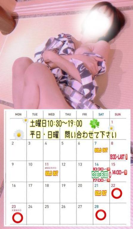 | ★重要★ 当日予約、及び前日予約の受付はAM9:00~開始させていただいております。 1.06-4394-8926までお電話下さい。 2.会員番号とお名前(仮名可)をお伝え下さい。 3.希望の女の子の出勤状況をご確認の上、予約ご希望の時間をお伝え下さい。 4.確認用のご連絡先(ケータイ番号)をお伝え下さい。 5.お客様からの予約確認のお電話を頂く時間(ご予約時間の1時間前)をお伝えさせて頂きます。 ※予定時間まで 1時間を切る場合は、確認電話は不要です。 例)20時予約を19時30分に取られる場合など。 |