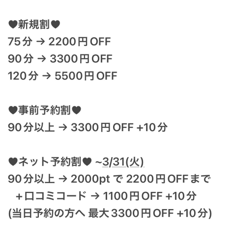 120分で5,500円割引です!!