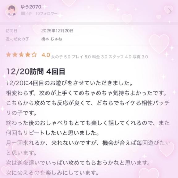 話も合うし、また来たいなんて嬉しい言葉