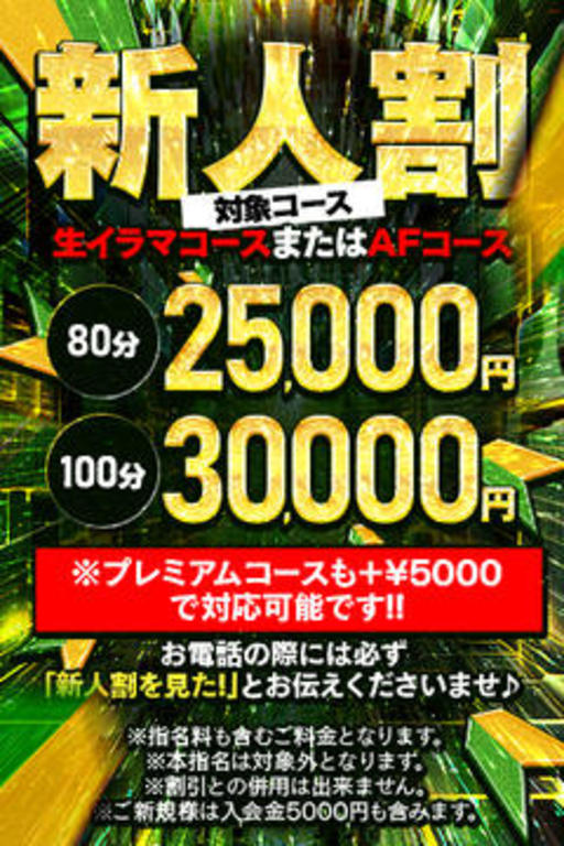 | パンティ持ち帰り、 パンスト破り、中バイブ(オルガスター) プレミアムコスチューム(各種) | 各2,000円 |