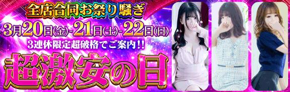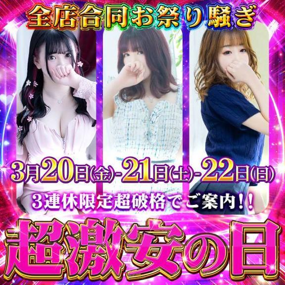| 【激安の日】 毎月6がつく日 (6日 16日 26日) グループ合同開催 毎月6が付く日の 固定イベント! ぜひ狙い撃ち しちゃって下さい! グループ全店開催! ご新規様も 本指名様も お安くなる日です! |