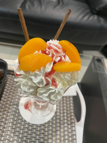 ルームサービスのパフェもありがとう〜っ🍨🍑💕
