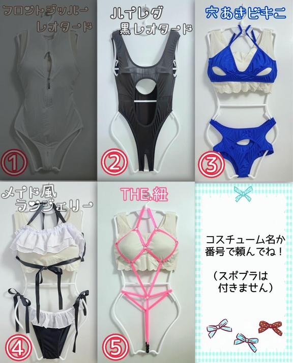 | その他、各種コスチュームも取り揃えております。またコスチュームの持ち込みも可能です!! 受付時にお気軽にスタッフにお申し付け下さい。 60分コースからご利用頂けます。 |