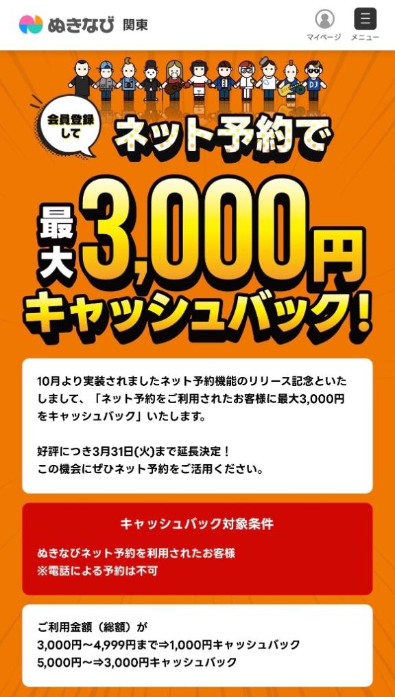 ぬ〇なびの前々日までのネット予約が、3000円のキャッシュバックがあっておすすめですimg