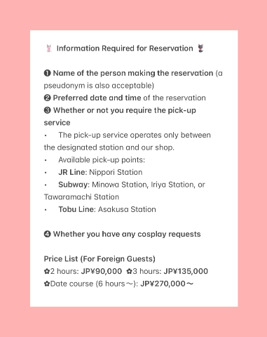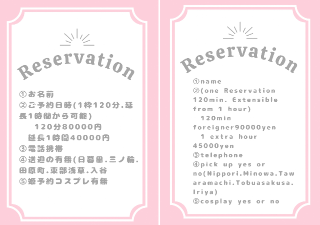 前日予約確認お願い致します!予約時間の2時間前までに連絡つかない場合はキャンセル扱いにさせていただきます。