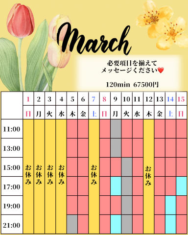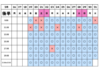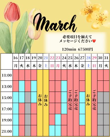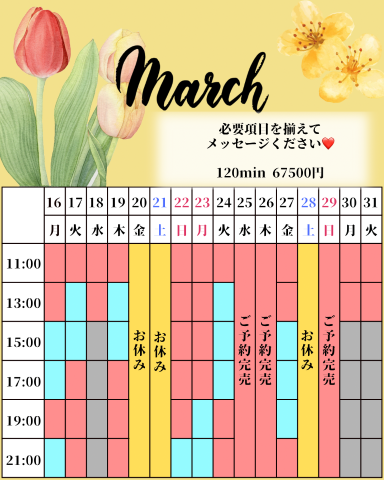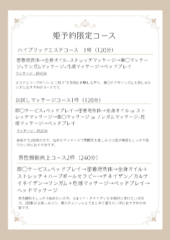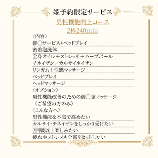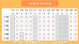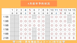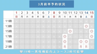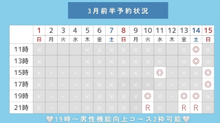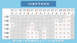 3/10 17時/19時(19時〜男性機能向上コース2枠🉑)
