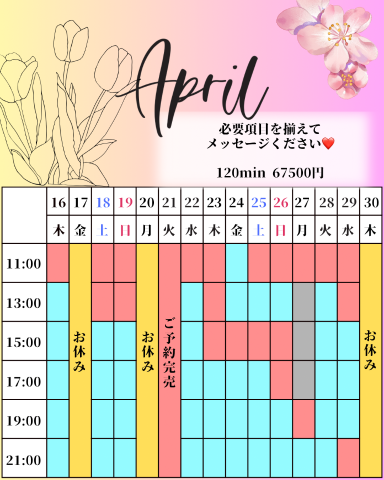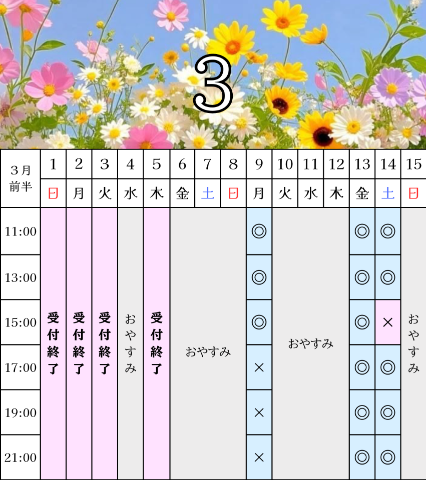 ⬇️現在のご案内可能なお時間はこちら⬇️