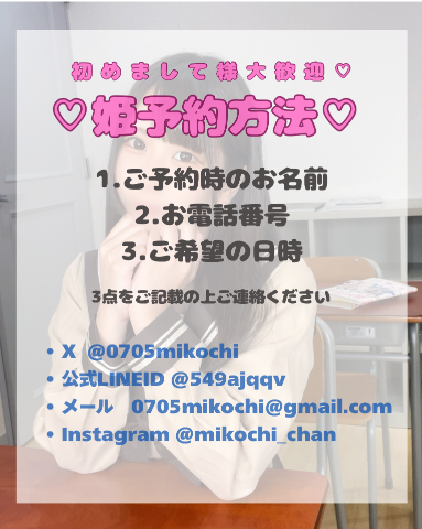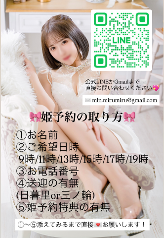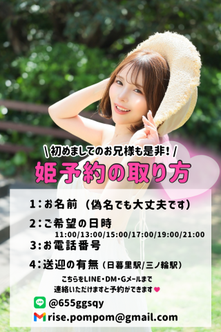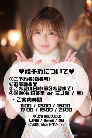 当日姫予約で出勤中ですと返信できない可能性があるため、暫くして返信が無い場合はお店に直接お電話お願いします🙇‍♀️