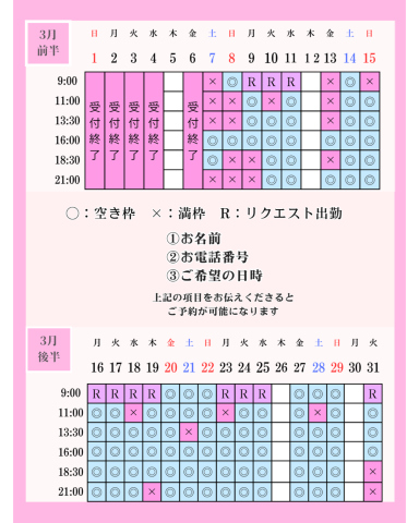 3/2 21:00-の本指名さん♡♡