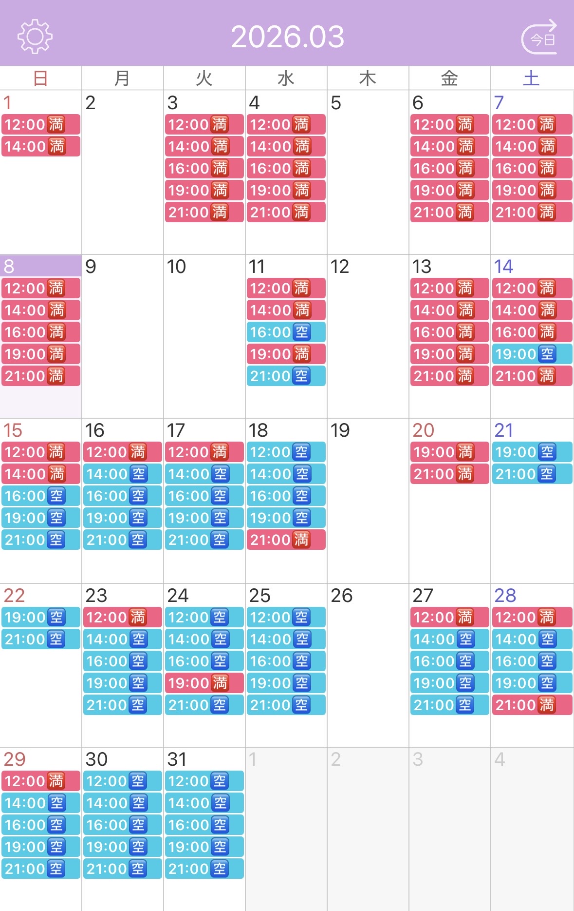 21:00枠・火曜・金曜・土曜などは姫予約