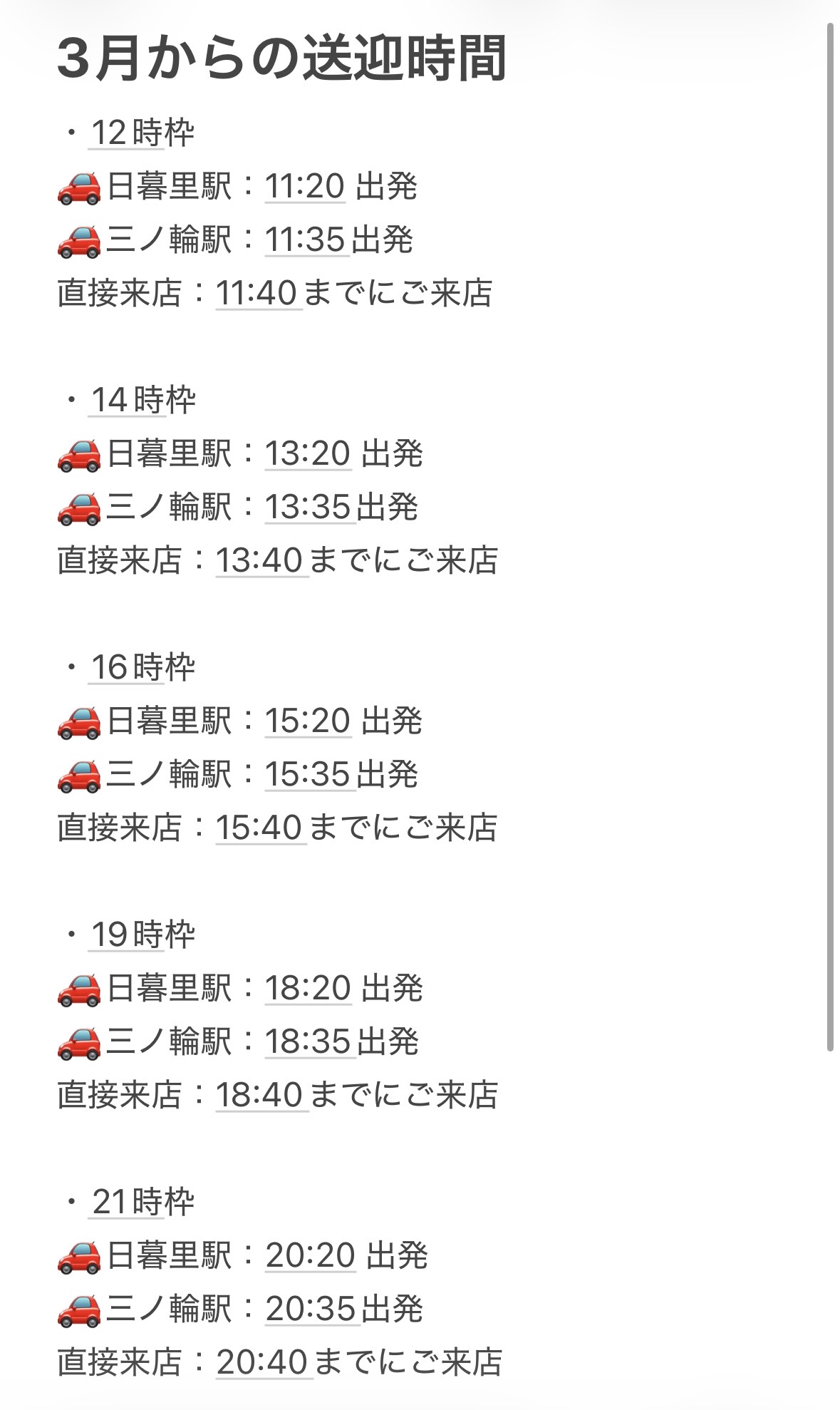 ・送迎の有無(日暮里駅or三ノ輪駅)