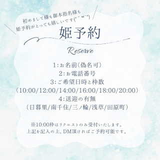姫予約・空き状況はこちらから💁‍♀️