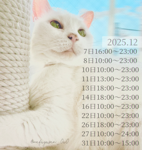 今月は12月28日にショーがあって、こちらはわりと今年締めのショーという事で先月よりめっちゃしっかりSMする予定なので、31日の出勤はちょっと不確定かもしれません。