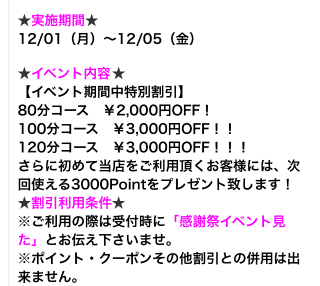 本指名様も対象のお得な割引イベント
