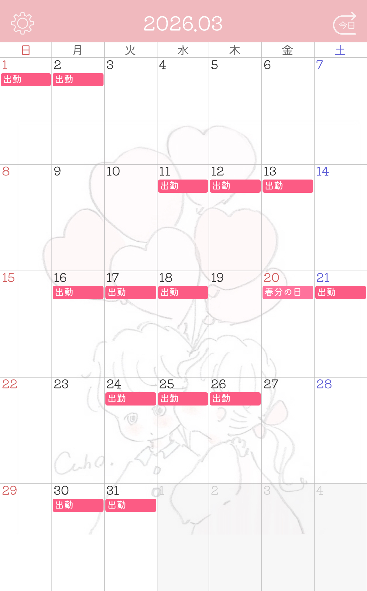 2月下旬~3月上旬のシフトがこちらです❁⃘*.゚