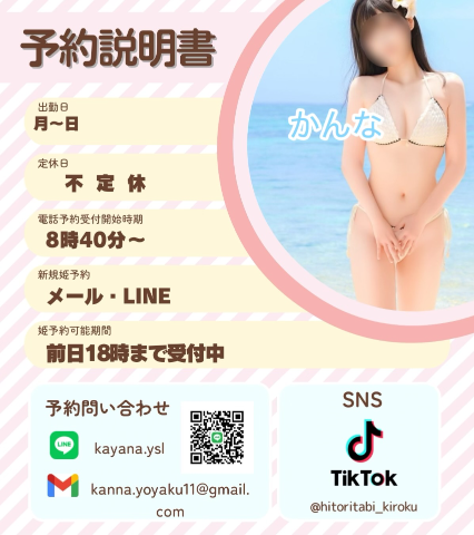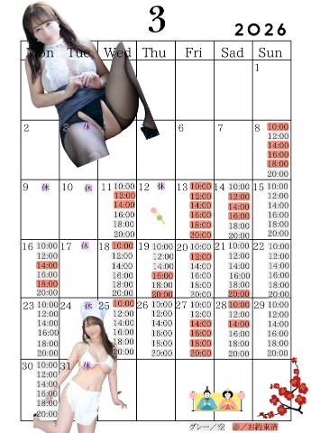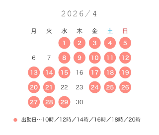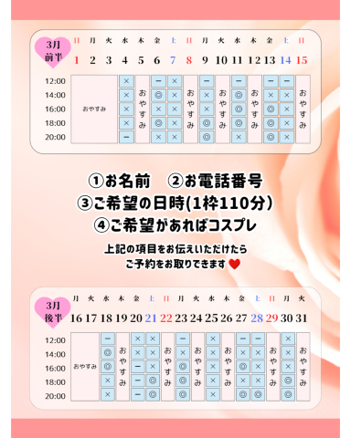 📢お休み表記の日も都合付けば、その時間だけリクエスト出勤できるかもしれません。お問い合わせお待ちしてます