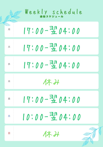 営業/10:00~翌4:00 定休日/なし