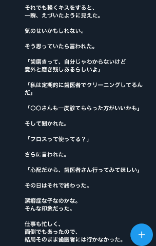 ある日、少し違和感があった。キスしようとしたら、顔を背けられた。眉間にシワがよっていた。明らかに嫌そうだった。それでも軽くキスをすると、一瞬、えづいたように見えた。気のせいかもしれない。そう思っていたら言われた。