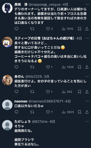 口のケアには、かなり気を遣っているつもりだった。普段から、紙タバコは吸う。コーヒーもよく飲む。