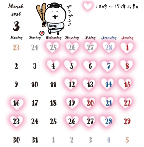 今月の出勤予定と空き状況は